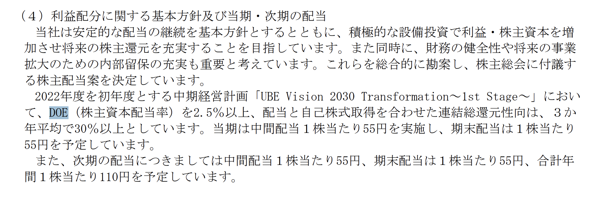 におい て、DOE(株主資本配当率)を2.5%以上、配当と自己株式取得を合わせた