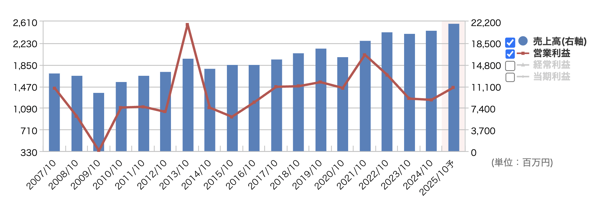 | 連25.10予 | 22,000 | 1,450 | 1,500 | 980 | 129.7 | 52 |