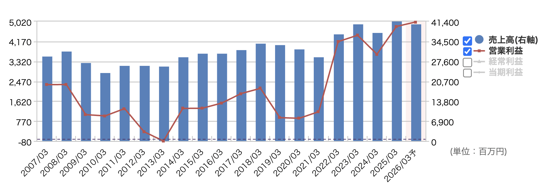 | 連26.3予 | 42,300 | 5,000 | 5,100 | 3,760 | 196.3 | 64 |